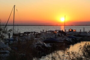 Raggiunto il lungomare Trieste è il momento di conoscere la terza anima della località friulana, Sabbiadoro. La ciclabile continua sotto i pini marittimi fino a Punta Faro, un posto magico, specialmente al tramonto. Di fronte c’è Martignano. Qui la chiamano l’isola delle Conchiglie. Raggiungerla è possibile in barca con la motonave Europa o la Saturno, che propongono piacevoli minicrociere nella laguna di Marano.