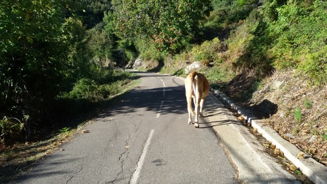 Qui la carreggiata è larga una corsia e mezzo, ed è regno incontrastato di mucche e vitelli, che vi ruminano indisturbati (occhio alle curve cieche), mentre in cielo appaiono i vasti giri dei rapaci in cerca di prede.