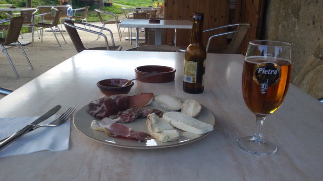 Attraverso foreste secolari superiamo il valico di Col de la Vaccia (1300 m circa), oltre il quale ci si dischiudono valli dove l’unica via di comunicazione è un trenino monorotaia che non consente il trasporto bici. In queste zone più impervie possiamo incontrare spesso maiali a bordo (o al centro della) strada, che non hanno certo paura dell’uomo né disdegnano bocconcini offerti dai turisti di passaggio: l’allevamento allo stato brado, infatti, ne garantisce la qualità delle carni – i corsi sono famosi per quattro cose: salumi, formaggi, castagne e birre. Proseguendo, davanti a noi l’orizzonte ci offre le forme frastagliate del complesso montuoso di Col de la Bavella, le cui cime aguzze ricordano paesaggi alpini o dolomitici.
