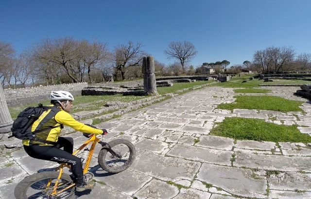 Superiamo un vecchio mulino in disuso, e mentre lo immagino attrezzato a bici grill, arrivo alle mura storiche di Altilia (Saepinum) e per un attimo ho la sensazione di vedere sbucare qualche legionario romano, tanto la città è perfettamente conservata!