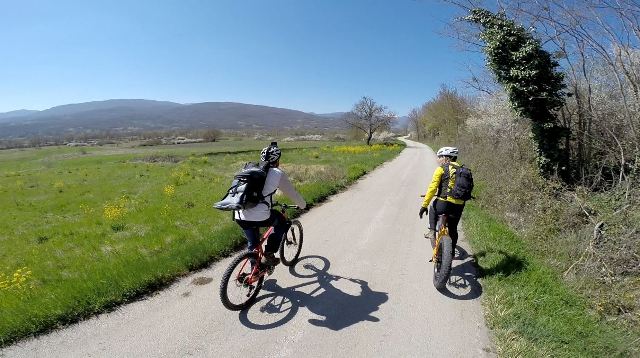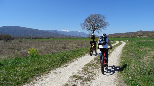 Il primo percorso che vi presentiamo permette di conoscere la piana di Bojano, il Regio tratturo e tutta la storia che qui si è dipanata nei secoli. Siamo nel cuore del Sannio, di qui sono passati i Sanniti, i Romani, Annibale con i soldati Cartaginesi. Più vicini a noi nella storia, fino ai primi del XIX secolo, da qui passavano gli allevatori che dalla Puglia spostavano le mandrie di bestiame sui prati verdi delle montagne circostanti. Per fare questo utilizzavano il Regio Tratturo, una sorta di autostrada verde, lunga 211 km che univa i monti Dauni (Puglia) con Pescasseroli (Abruzzo). Ognuno di loro ha lasciato tracce del suo passaggio, chi una città fortificata (Sanniti e Romani), chi un ponte (Annibale), e chi il tratturo, che oggi utilizzeremo come traccia della nostra uscita in MTB.