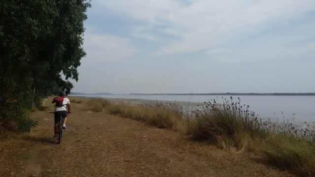 Poco prima della rotatoria sul lungomare, abbiamo la possibilità di effettuare la seconda deviazione del nostro tracciato, quella per l’oasi WWF di Fogliano, dove lunghi sentieri sterrati ci condurranno sulle sponde del lago in cerca di uccelli acquatici. Qui tutto è immobile e tranquillo, ad eccezione di rari battiti d’ala di aironi o garzette tra i giunchi.
