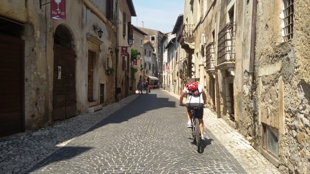 In questo caso, una ciclabile nuova di zecca ci porta verso Ninfa, le montagne davanti a noi. L’unica salita che può offrire qualche disagio è quella per Sermoneta, che poggia su una rocca sovrastante tutto l’Agro Pontino, e si tratta di circa 3 km di tornanti.