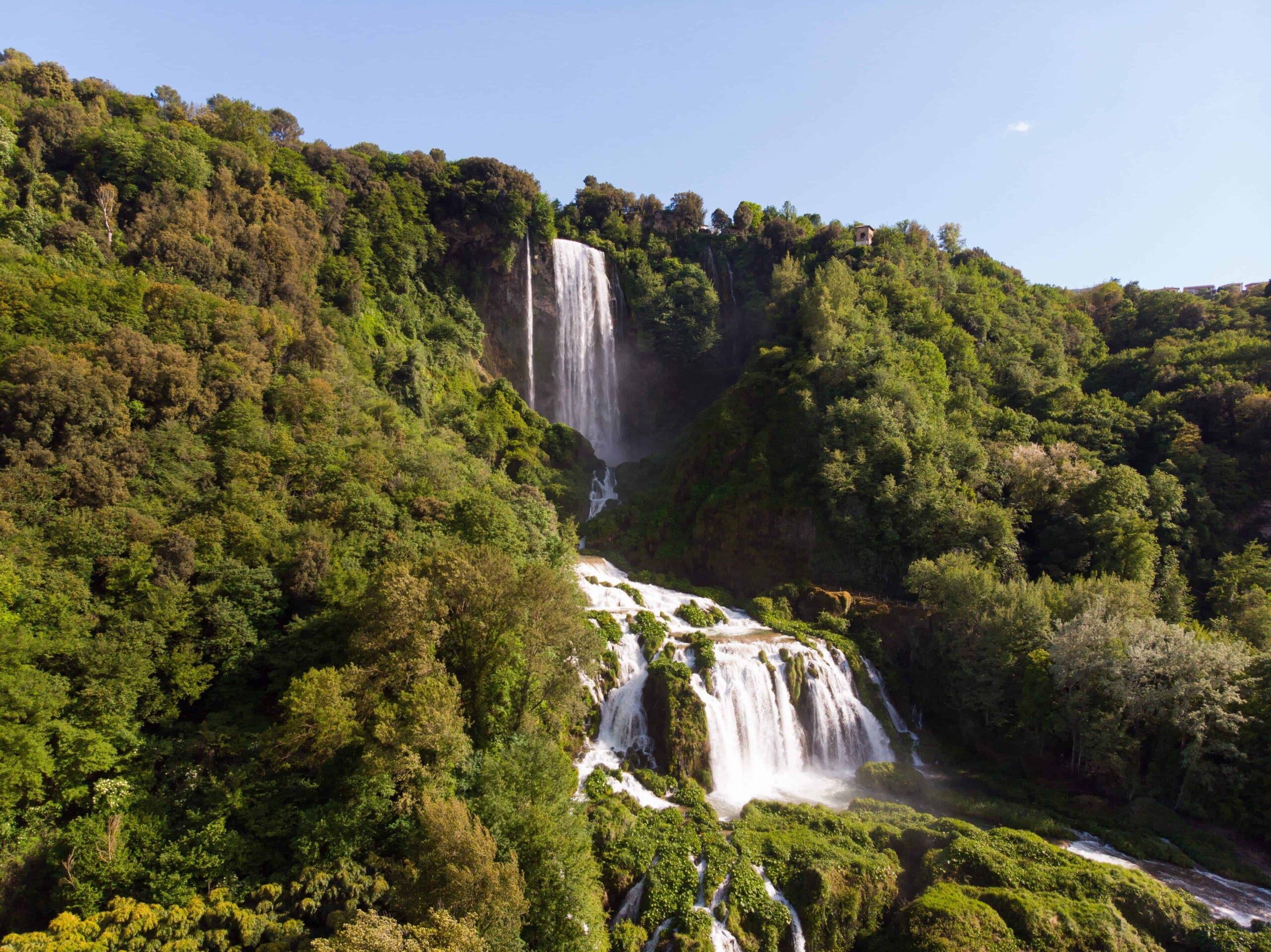 Raggiungiamo la Cascata delle Marmore giusto in tempo per rimanere incantati dalla sua maestosità, fino a quando la vediamo spegnersi lentamente: è una cascata a flusso controllato, e quando l’acqua viene deviata in condotte forzate per la produzione di energia idroelettrica il salto non è a pieno regime. Prima di andarla a visitare informatevi sugli orari.
