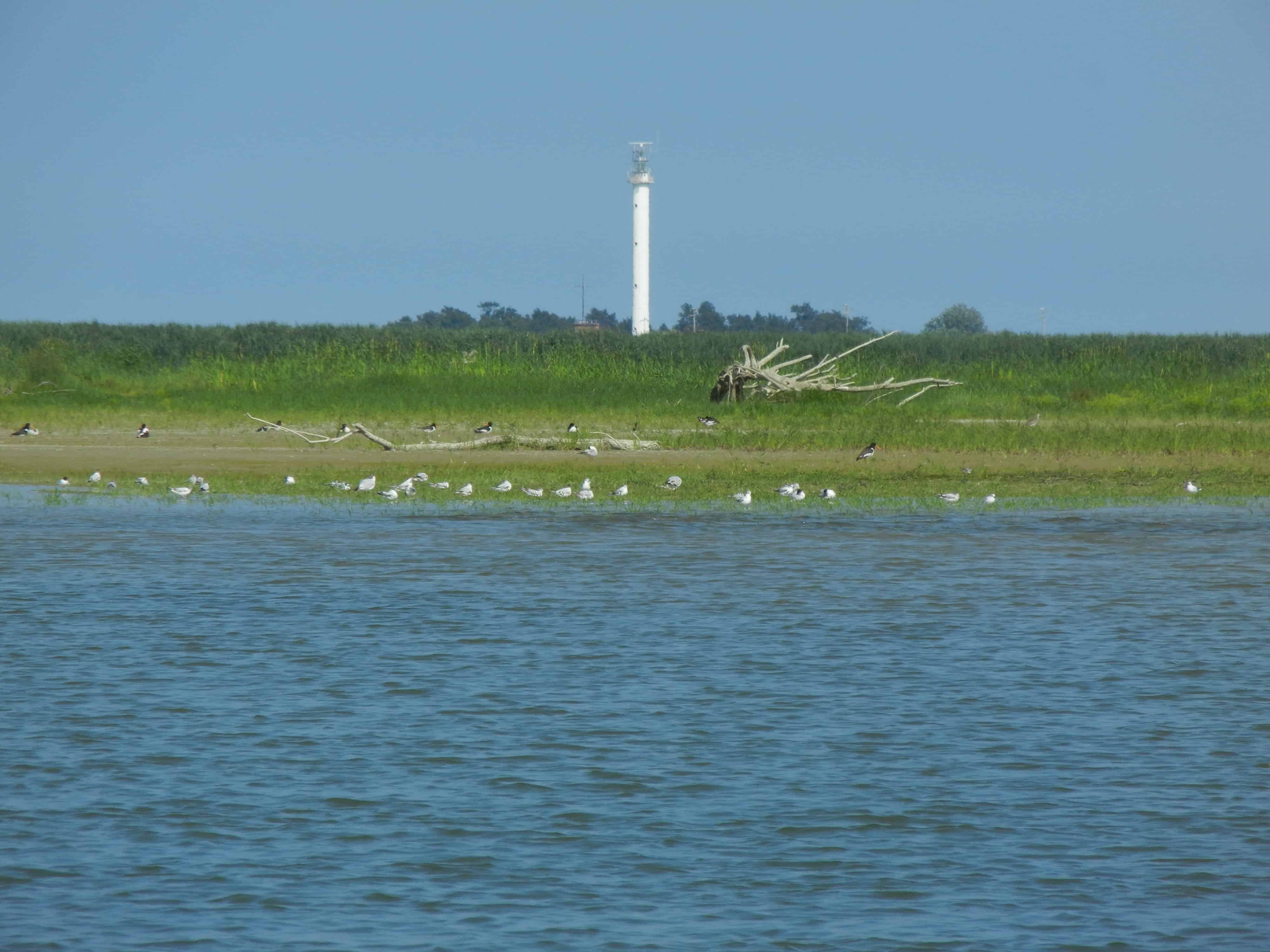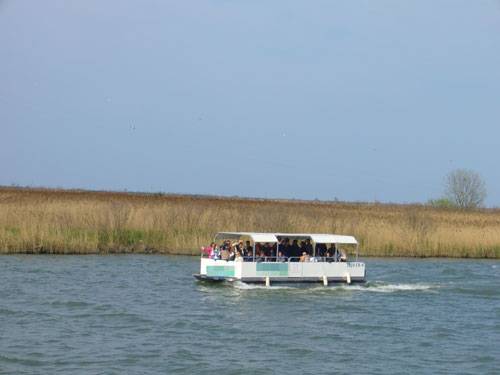 Arrivati all’abitato di Pila è possibile lasciare le biciclette e in prossimità delle “cavane” , i ricoveri delle barche dei pescatori, prendere una barca e farsi portare alla scoperta delle buse, delle lagune nelle zone dove le acque del Po si mescolano con quelle del mare e danno vita a quell’intreccio di canali che vi consentono di navigare fino al faro di Pila, ammirando stormi di uccelli intenti a riposare e rifocillarsi in tutta tranquillità. Lo spettacolo è davvero unico, da solo vale la fatica della giornata.