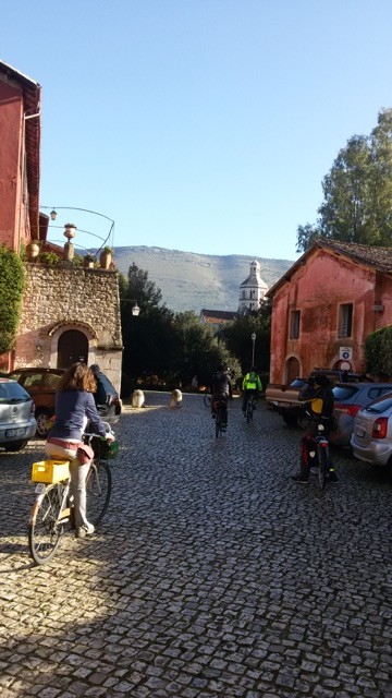 Per arrivarci, imbocchiamo ancora la via Appia, che all’altezza del Pisco Montano regala un bel paesaggio sugli scogli e sul mare. Superato uno svincolo che rende la statale più trafficata, deviamo a destra in prossimità del Lago di Fondi per rilassarci su un’altra “ciclabile naturale”, una stradina che costeggia la linea ferroviaria passando per campi, torri moresche e allevamenti di bufale.