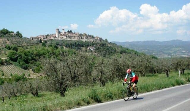 Volete pedalare attorno ad uno dei Borghi più belli d’Italia, teatro di film e fiction come Fratello sole e sorella luna di Franco Zeffirelli o Don Matteo? Allora Bevagna, in provincia di Perugia, fa al caso vostro. Un tempo nota per le tele pregiate che qui si producevano, dette appunto “bevagne”, è una cittadina antica dalla storia importante e ricca di opere artistico-culturali di grande bellezza che ha mantenuto ancora inalterato il suo aspetto medioevale. Vale la pena visitare nel cuore del borgo visita la splendida Piazza Silvestri, il palazzo dei Consoli (1270), che ospita il Teatro Torti, le chiese romaniche di San Silvestro e di San Michele, entrambe della fine del XII secolo, la chiesa di San Domenico e Giacomo (1291). Sul luogo più alto della città sorge la chiesa di San Francesco (fine XIII secolo): accanto all’altare la pietra su cui poggiò San Francesco per predicare agli uccelli a Pian d’Arca.Il nostro giro in bici può dunque partire dal centro di Bevagna da dove usciamo percorrendo partire Corso Matteotti. Fuori dalla cittadina prendiamo a sinistra, ma subito dopo svoltiamo a destra sulla secondaria Via Sant’Anna, che in breve ci porta fuori dalle abitazioni e e ci fa immergere nella suggestiva campagna. All’incrocio per Foligno e Cannara, attraversiamo la strada e proseguiamo diritti fino al chilometro 2,8, quando giriamo a destra e, costeggiando il corso del fiume Topino, percorriamo circa un chilometro di strada sterrata. All’incrocio con la SS316 giriamo a sinistra verso Foligno (occorre prestare attenzione perché si tratta di una delle poche strade trafficate dell’itinerario). Al chilometro 5 lasciamo la statale girando a sinistra in direzione del piccolo centro di Budino, dove arriviamo al chilometro 6,8. Da qui seguiamo le indicazioni per Cannara, dove arriviamo dopo circa 4 chilometri completamente piatti che seguono l’argine del Topino. A Cannara, famosa per la prelibata cipolla, sono molto interessanti la chiesa di San Biagio, esempio di tardo romanico umbro, la chiesa di S. Matteo (XIV), con all’interno un trittico dell’Alunno e la statua lignea dell’Addolorata, e la Chiesa di San Sebastiano, sede della Pinacoteca. A pochi chilometri da Cannara, in località Collemancio si possono ammirare i resti dell’antico municipio romano di Urvinum Hortense, dove gli scavi archeologici hanno riportato alla luce molti importanti reperti, esposti in modo permanente nell’Antiquarium. Visitato il centro di Cannara, usciamo in direzione di Bevagna proseguendo sulla SP410 fino all’incrocio con la SP403, dove giriamo a sinistra, sempre in direzione di Bevagna. Prendendo a destra, invece, con una deviazione di circa 10 chilometri, è possibile visitare anche il centro storico di Bettona, che per il suo patrimonio artistico e paesaggistico è entrato, anche questo, a far parte dei “Borghi più belli d’Italia”. Al chilometro 18 arriviamo a Cantalupo, dove giriamo a destra: affrontiamo una rotonda e seguiamo le indicazioni per Castelbuono, imboccando la strada che costeggia sulla destra il canale. Proseguiamo su questa strada tra i campi fino all’incrocio posto al chilometro 19,8, dove giriamo a sinistra abbandonando le indicazioni per Castelbuono. Teniamo sempre la sinistra e, superato il ponte sul torrente Attone, svoltiamo a destra verso Torre del Colle; da qui inizia una breve salita di circa un chilometro che conduce sino a questo piccolo e caratteristico borgo da dove proseguiamo in direzione di Bevagna. Al chilometro 24,8, arrivati alle porte della cittadina, giriamo a destra costeggiando il fiume Clitunno fino al bivio con Viale Roma, dove giriamo a sinistra e rientriamo verso il centro di Bevagna.