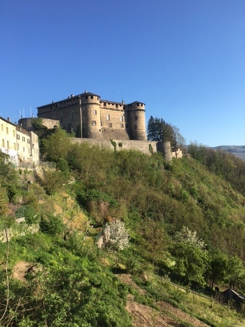 Partiamo dall’Agriturismo Le Carovane in una mattina tersa e frizzante, il sole ancora basso che illumina i tetti e le mura del Castello.