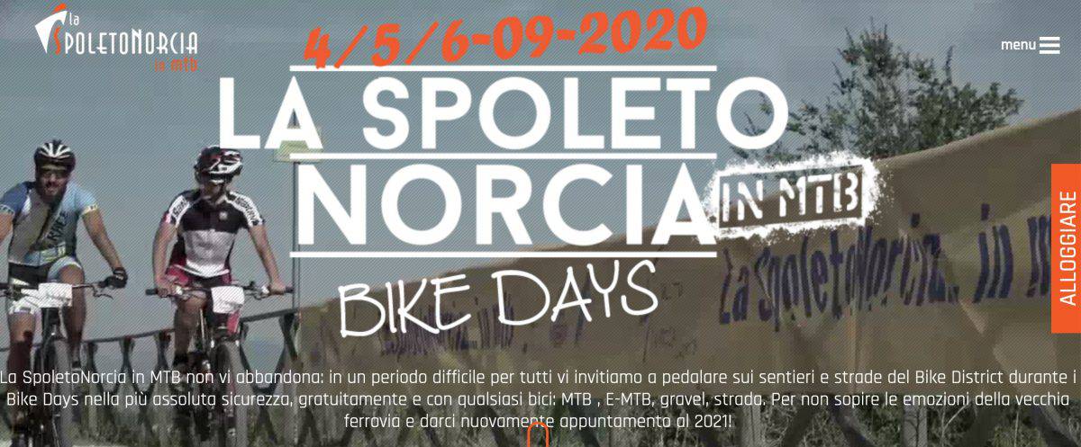 A Spoleto nasce il Bike District, tanti gli eventi e gli ospiti degli Aperibici, da Osvaldo Bevilacqua a Peppone Calabrese, da Patrizio Roversi a Tiberio Timperi. Si pedalerà, si parlerà di bici, ci si incontrerà di nuovo tra cicloamatori, anche se “a distanza di sicurezza”. Ma la bicicletta distanzia per natura e I Bike Days di Spoleto saranno all’aperto e in un contesto tutto “green”. Il 4, 5 e 6 settembre i ragazzi della Spoleto Norcia MTB vi invitano a conoscere in bicicletta i più affascinanti sentieri e ciclabili dell’Umbria nella più assoluta sicurezza, con qualsiasi bici, che sia MTB , E-MTB, gravel, strada. La novità è che quest’anno la Spoleto Norcia cambia veste.