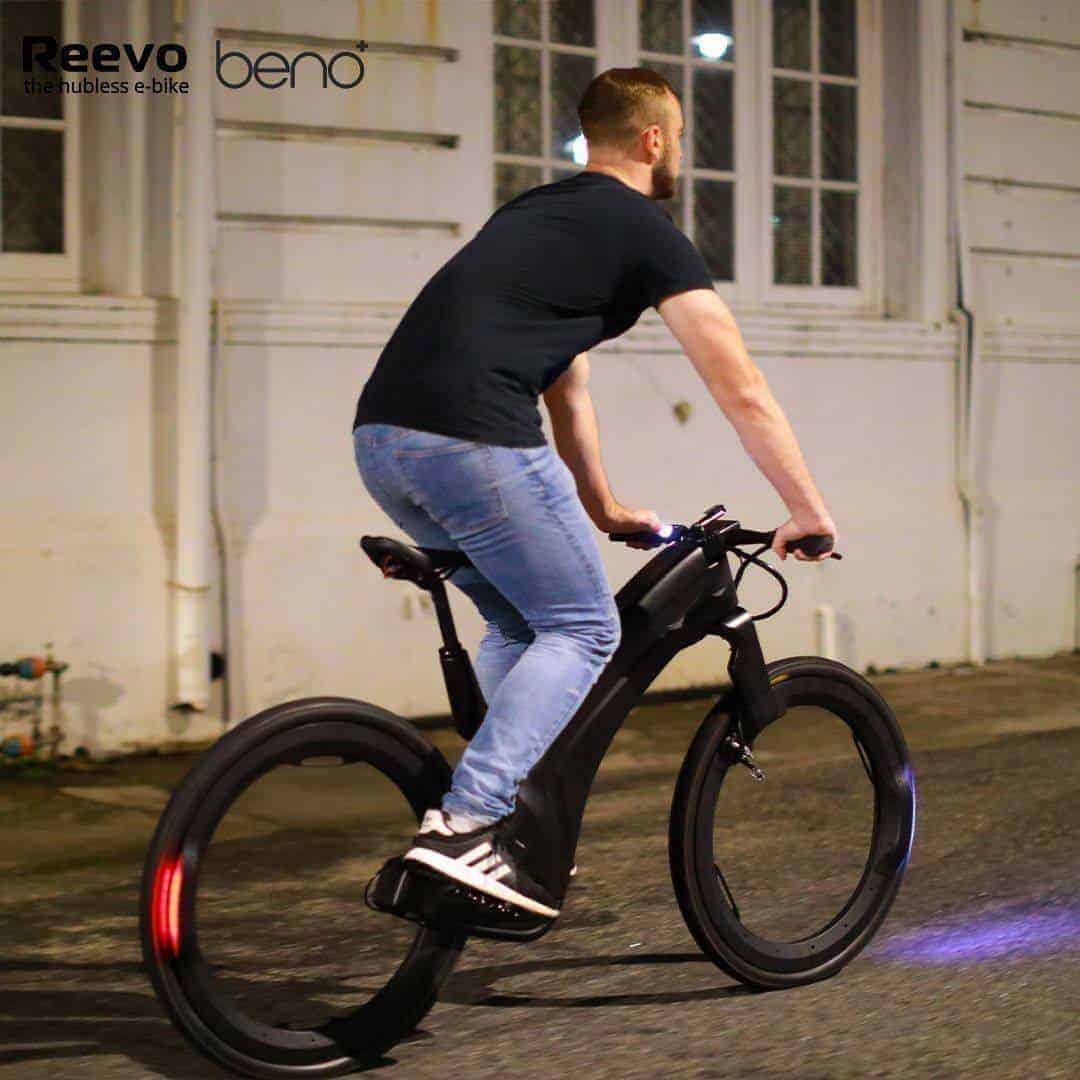 Dalle forme futuristiche Reevo è una e bike senza raggi né mozzi ovvero hubless. Le ruote di questa bicicletta sono in grado di muoversi grazie ad un sistema che prevede l’uso di un doppio cerchione, uno mobile che mantiene il pneumatico e l’altro fisso, dotato di cuscinetti che permette alla ruota di scorrere. Pesa poco meno di 25 kg, il motore è da 250 watt. Monta sensori di movimento e di luminosità ambientale, fari led installati direttamente sulle ruote ed un sistema di antifurto basato su autenticazione biometrica che permette di avviare la bicicletta solo dopo aver scansionato l’impronta digitale del proprietario. L’utente riceve una notifica sullo smartphone nel caso in cui la bicicletta, se parcheggiata, dovesse subire movimenti imprevisti. Le prime bici Reevo saranno consegnante in tutto il mondo dal prossimo mese di maggio, ma si possono già pre ordinare, costo a partire da 1.877 euro. www.reevobikes.com