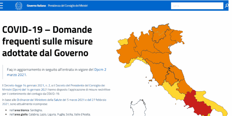 Non sono cambiate molte cose rispetto alle precedenti misure anti Covid 19, ricordiamo che queste rimarranno in vigore fino al 27 marzo, l’unica novità di rilievo è la presenza di un’area bianca, identificata al momento con la Sardegna.