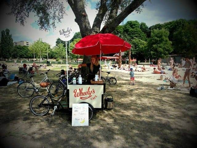 Nasce alla Nordic Society for Invention and Discovery, laboratorio di ricerca scandinavo che sperimenta e sviluppa prodotti creativi. Per aprire un caffè low-cost ed ecologico, ma anche essere «i capi di se stessi» si parte dai 3mila dollari, per un profitto, secondo i test degli ideatori, tra i 150 e i 300 dollari al giorno. La cargo-bike funziona con una batteria solare e grazie alle pedalate, ha un piccolo fornello a gas, un lavello, thermos per il caffè e un ombrello parasole. Nei primi quattro mesi sono oltre 30 le Wheely’s bike acquistate in più di dieci Paesi. Ora i progettisti hanno lanciato la Wheely’s 2.0 su Indiegogo, promettendo un guadagno fino a 700 dollari al giorno per un investimento iniziale di 3450 dollari. La bici è elettrica e dotata di schermo LCD. http://www.wheelyscafe.com/