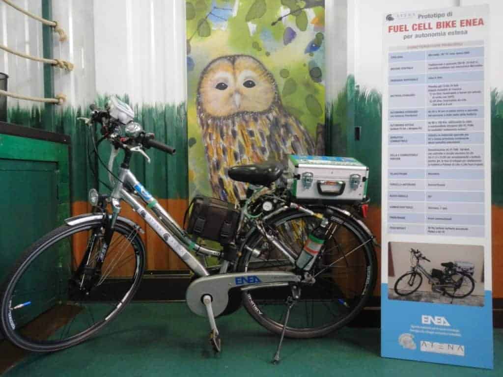 Si è messa in mostra a Roma, anche una bici a idrogeno Enea durante la parata ecologica per la gara di Formula E. Durante la E-Parade dei mezzi ecologici a due, tre o quattro ruote, si è potuta vedere anche la E-Bike H2FC, ovvero il prototipo a ricarica ibrida a zero emissioni, che integra la batteria del motore elettrico con una cella a combustibile da 100 Watt alimentata a idrogeno posta nel bauletto del mezzo. Il motore da 250 watt può raggiungere una velocità di 25 km/h con un’autonomia fino a 100 km, doppia rispetto a una comune bici elettrica, grazie a una piccola bombola di riserva di idrogeno a bassa pressione in grado di garantire il rifornimento in cinque minuti. Con una seconda bombola della stessa capacità (20-30 grammi) potrebbe raggiungere una autonomia di 150 km.