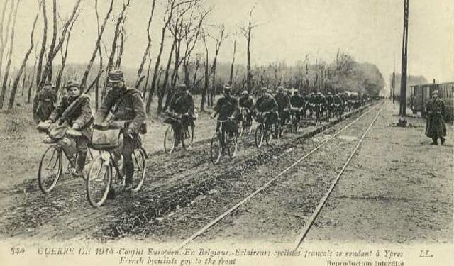 La Grande Guerra, ovvero la guerra delle biciclette: si calcola che furono circa 550.000 i militari ciclisti che combatterono in Europa tra il 1914 e il 1918. Partirono in bici quei giovani soldati e, nella stragrande maggioranza, la bici la lasciarono a infangarsi nelle trincee, perché il conflitto divenne qualcosa di molto complesso, un gioco di posizione, ma sporco di sangue, per anni. Le biciclette rimasero infangate al fronte o rinchiuse nelle caserme: venivano utilizzate dai portaordini, le bici erano un mezzo di comunicazione.