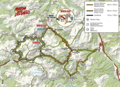 Ad attrarre ciclisti di almeno 54 Paesi diversi sicuramente le spettacolari Dolomiti: La partenza è alle 6.00 da La Villa e si percorrono 138 km con un dislivello di 4230 metri. Un succedersi di Passi famosissimi: il Passo di Campolongo, il Pordoi, il Sella,il Gardena, il Giau e il Valparola. Un’infilata da togliere letteralmente il fiato.