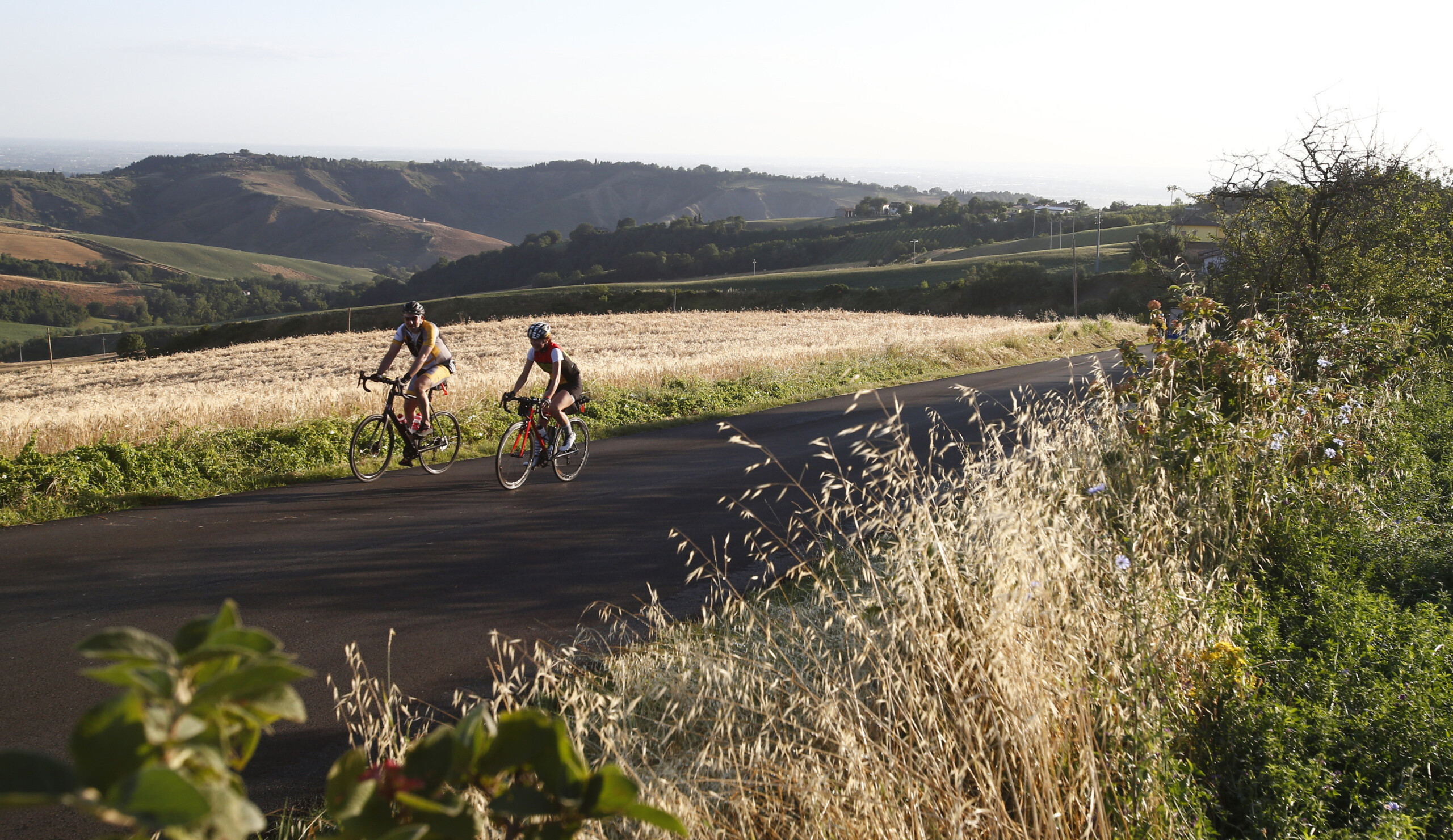 Si pedala dunque in un solo giorno, dall’Adriatico al Tirreno, si va da costa a costa, da est a ovest, dalle colline romagnole a quelle del Chianti e oltre, da mare a mare. Nessun numero di gara, ma un nastrino arancione che si lega al sellino e che simboleggia un “raggio di sole” e ricorda che si pedala al ritmo del proprio passo col sole che fa da cronometro naturale.