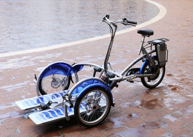 Nel nostro Paese, purtroppo, ancora oggi non sono tante le bici per disabili in commercio, rispetto al panorama Europeo che invece ne fa largo utilizzo. Ma rispetto alle altre, che innovazioni porta questa bicicletta? Lo spiega a Viagginbici lo stesso ing. Franceschini, titolare della Protec Ambiente: “La prima caratteristica è sicuramente la sua semplicità di utilizzo che la rende unica nel suo genere: richiede, infatti, un addestramento di pochi minuti per capire i comandi principali e le possibilità del mezzo. Poi l’innovativo sistema elettrico di pedalata assistita e di retromarcia, permette a chiunque in maniera molto semplice di condurre l’individuo a destinazione, parcheggiare e manovrare. Inoltre la sua particolare pedana basculante permette il “carico” della persona senza doverla spostare dalla carrozzina, senza sforzi, in maniera veramente semplice”. “Infine, prosegue Franceschini, la bicicletta si può adattare al trasporto di qualsiasi tipologia di carrozzina e a tutti i tipi di difficoltà motorie”.
