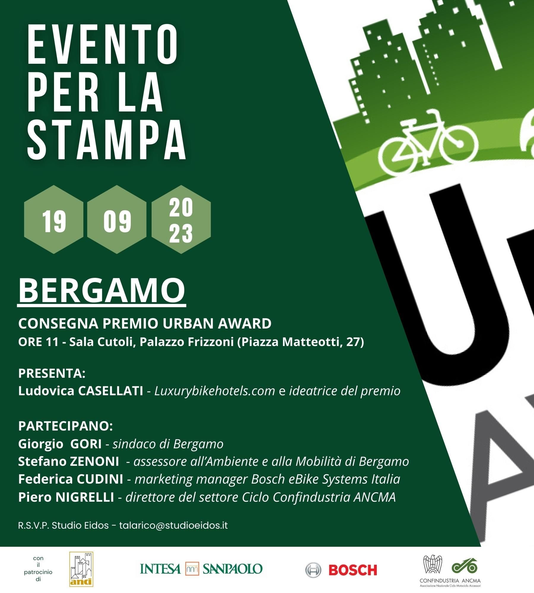 Noi di Viagginbici.com intanto il 19 a Bergamo premieremo il sindaco Giorgio Gori e la città, che lo scorso anno hanno vinto l’Urban Award, il premio che la nostra testata assieme ad Anci assegna ai progetti migliori di mobilità urbana sostenibile. Un primo premio figlio delle iniziative che la città ha messo in campo per favorire l’utilizzo della bicicletta in città, grazie alla realizzazione del progetto Bergamoinbicicletta. Come premio verranno consegnate alcune cargo bike a pedalata assistita che potranno contribuire a promuovere soluzioni di mobilità attiva, come gli spostamenti in bicicletta, il commuting urbano e gli spostamenti sostenibili del cosiddetto “ultimo miglio”.