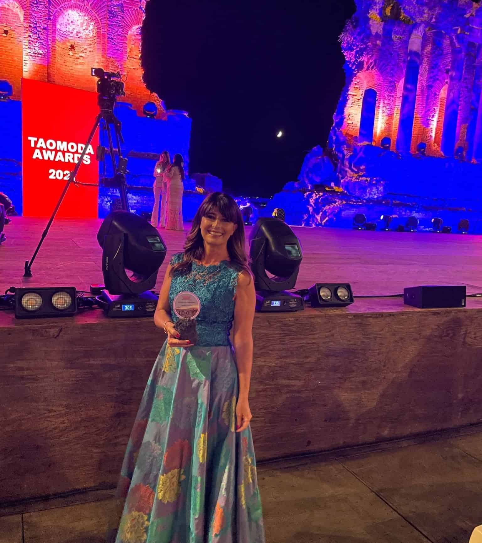 E’ il prestigioso premio internazionale assegnato a coloro che si sono distinti nel mondo della moda, del giornalismo, della scienza, della sostenibilità, della televisione, dell’imprenditoria, della solidarietà, della cultura, della musica, dello spettacolo. Il Premio stato consegnato durante il Gala Taomoda Awards, evento clou della rassegna internazionale Taomoda in calendario tra i “Grandi Eventi” della Regione Sicilia, sul palcoscenico del Teatro Antico di Taormina. Tra coloro già insigniti del premio ci sono Ermanno Scervino, Brunello Cucinelli, Raffaella Curiel, Carla Sozzani, Emanuele Farneti, Violante Placido, Catena Fiorello, Paolo Gerani, Alessio Boni, Giovanni Audiffredi, Vera Slepoj, Serena Autieri, Il Volo, Fondazione Gianfranco Ferrè, Genny, Anna Valle, Antonio Marras, Carla Vanni, …