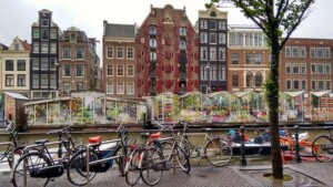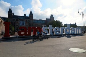 Mercoledì 15 luglio: oggi siamo diretti ad Amsterdam. Partiamo di buonora: piove e continuerà a piovere fino ad Amsterdam. Fortunatamente tutto il percorso è su pista ciclabile in sede propria e perciò possiamo pedalare in tutta sicurezza. Dopo 43 km arriviamo in hotel, fradici. Dopo esserci ristorati, partiamo alla scoperta della città a piedi, visto che continua a piovere ininterrottamente. Subito nei pressi del quartiere dei musei, che nonostante il cattivo tempo è strapieno di gente. E poi a spasso per la città: piove e non piove continuamente.