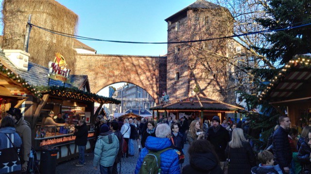Il primo mercatino di Natale lo trovate all’uscita dell’aeroporto mentre andate a prendere la Metro (S8) per raggiungere la città. Omini di legno di tutte le fogge, palline e decorazioni coloratissime, scarpe di lana cotta ma soprattutto sempre e ovunque pretzel, punch e salsicce con crauti!