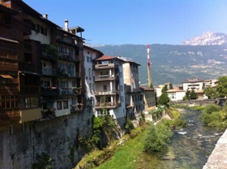 Ad un certo punto, arrivati alle sponde del Leno, mi appare da una parte l’ imponente Castello quattrocentesco che ospita il Museo storico italiano della Grande Guerra, e dall’altra quella parte della città che si specchia sul fiume e che ha come sfondo la splendida Vallagarina incorniciata dalle montagne.