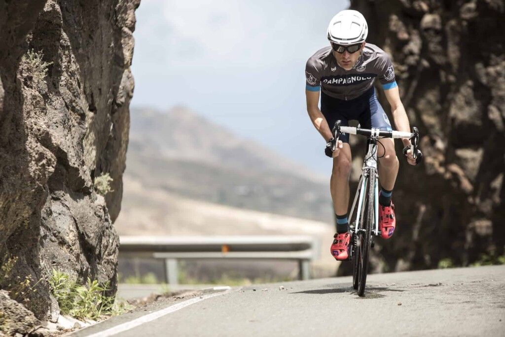 «I problemi al piede sono originati fondamentalmente da due ragioni, che spesso sono svincolate l’una dall’altra. Il primo è la scarpa non idonea. Diciamo che al giorno d’oggi tutte le scarpe da ciclismo sono strutturalmente concepite per essere idonee e ben concepite, ma il problema è capire se quella scarpa è adatta al tuo piede, se ha una calzata adatta alla tua anatomia. La seconda causa di problema alla pianta è la mancanza di equilibrio nella posizione del piede, ovvero se il piede è fissato male al pedale attraverso la tacchetta di aggancio».