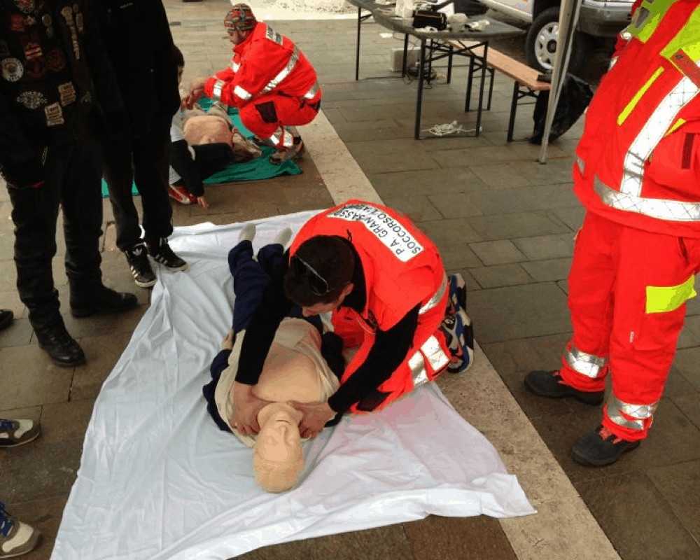 Ma se a disinfettare una ferita e a mettere un cerotto siamo bravi tutti, ci sono altre conoscenze che si acquisiscono con corsi specifici. Con procedure che non è affatto il caso di improvvisare. Un ginocchio sbucciato, infatti, è una cosa, altro è quando si richiedono interventi più importanti. Anche qui, bisogna rassicurare il cliente, sapere bene dove ci si trova nel caso si richieda l’intervento dei soccorsi, per dare informazioni che possono salvare una vita. Avere quindi un telefono funzionante e carico, senza dimenticare un power-bank. In caso di telefonata ai soccorsi, c’è da rimanere calmi, essere precisi e collaborativi. Nel frattempo, in base alla situazione che ci si trova di fonte, si possono compiere azioni che non vanno improvvisate. Di fronte ad una persona con trauma ma che rimane cosciente, o in caso di incoscienza – che continua comunque a respirare – magari dopo una brutta caduta, si interviene con la cosiddetta Posizione laterale di sicurezza. Il che permette il mantenimento della funzione respiratoria e rassicura la persona terra, con la quale continuare a parlare in attesa dei soccorsi. Serve anche nel caso sia necessario soccorrere altri sul posto, così da mettere la persona in sicurezza, pur non potendo rimanere vicini. E’ una manovra che richiede preparazione e non va improvvisata. Altro tema quando la persona è in in arresto cardiaco o arresto respiratorio e si richiede una Rcp-Rianimazione cardio-polmonare. Il massaggio cardiaco insomma, abbinato alla ventilazione artificiale, la respirazione “bocca a bocca”: è utile avere con sé anche la cosiddetta Pocket resuscitation face mask, una maschera che previene appunto il contatto del “bocca a bocca”. Un bravo accompagnatore sa anche usare un defibrillatore, quando ve ne fossero di presenti nei posti pubblici di intervento. Poi, considerando che una buona pedalata si chiude sempre con brindisi e degustazioni, l’accompagnatore anche in questo caso deve essere pronto e preparato. Non tanto sui vini serviti – sui quali è bene sapere qualcosa – quanto nel saper effettuare, in caso di necessità, la manovra di Heimlich, vale a dire di disostruzione delle vie aeree.