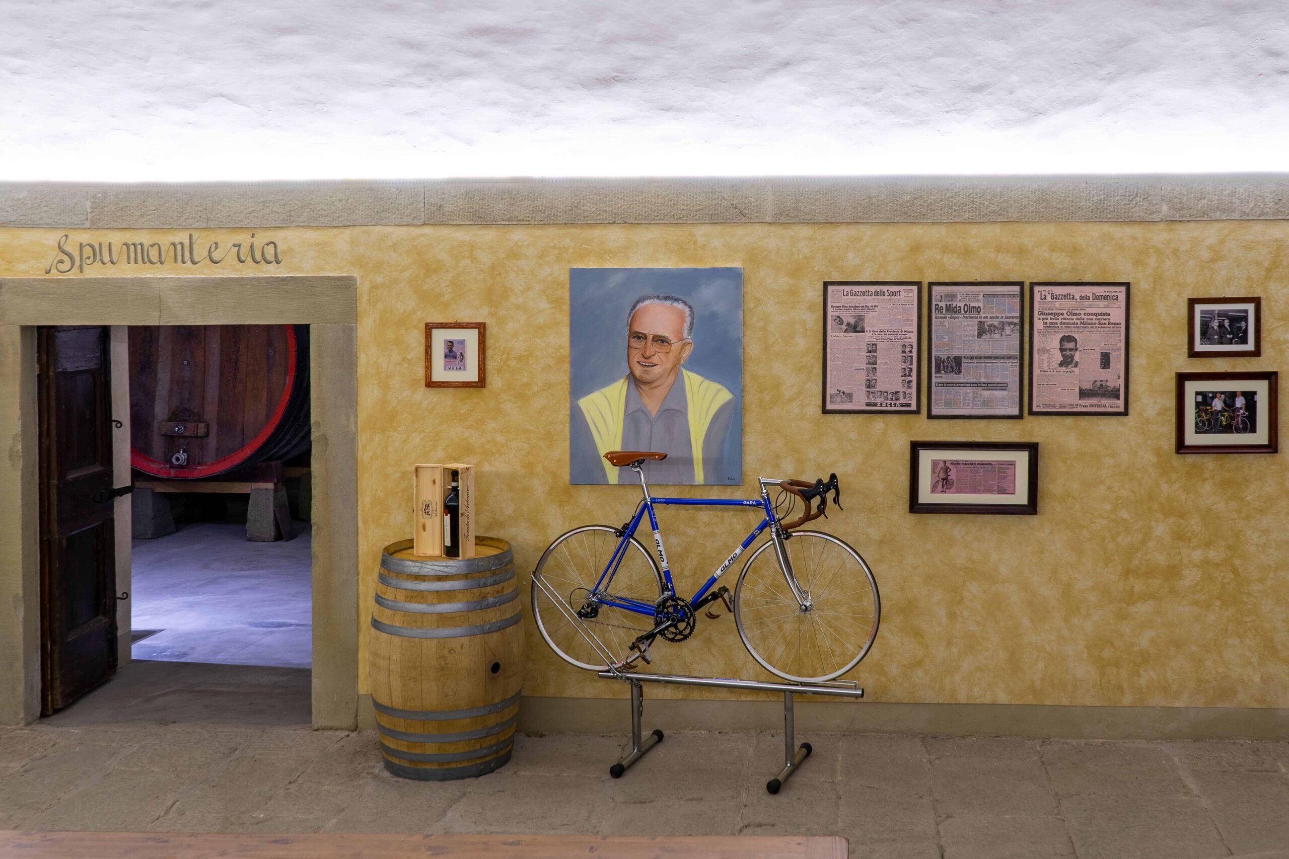 Innamorato della Tenuta, Olmo ne capì subito le potenzialità e decise di trasformarla in un luogo di raffinata ospitalità, area di produzione agricola d’eccellenza, di gastronomia autentica e di vini pregiati. Quella stessa passione viene oggi profusa nella gestione della Tenuta di Artimino dai nipoti del campione, Annabella Pascale e Francesco Olmo. Per celebrare il forte legame della Tenuta con il mondo bike e con la storia di Giuseppe Olmo, è stato recentemente inaugurato nelle segrete delle Villa uno spazio museo che racconta la storia del grande campione, con alcuni ritagli storici che ripercorrono i suoi principali successi. A raccontare questa storia è anche la bottiglia magnum che è stata ideata allo scoccare degli 80 anni del record dell’Ora, messo a segno nel 1935. Sempre nella sala sotterranea della Villa, denominata Salone del Delfino, trovano dimora l’archivio storico e una zona dedicata al vino, con la collezione delle vecchie bottiglie, dagli anni ’80 ad oggi e un percorso narrativo attraverso i suoli e i metodi di produzione, per finire con la tasting room. Oggi Tenuta di Artimino sta puntando molto sul mondo del cicloturismo: parte del circuito Luxury Bike Hotel, offre esperienze su misura per appassionati delle due ruote, in un territorio che da sempre ha fatto di questo sport un vanto e un fiore all’occhiello.