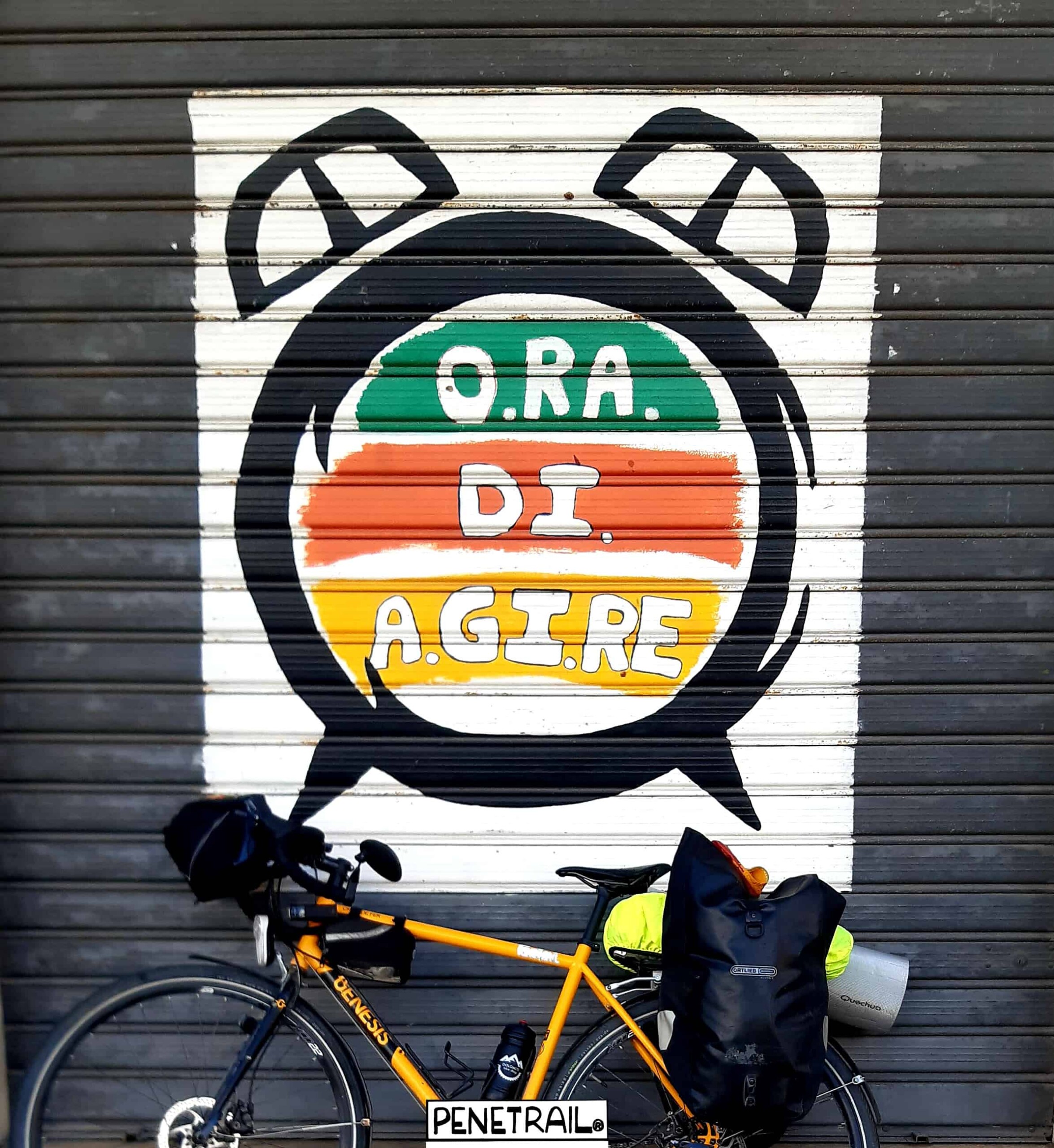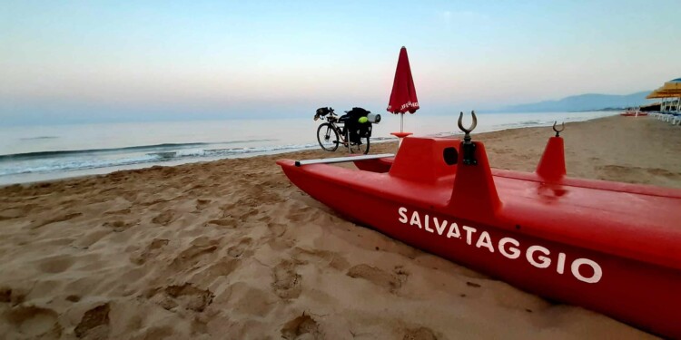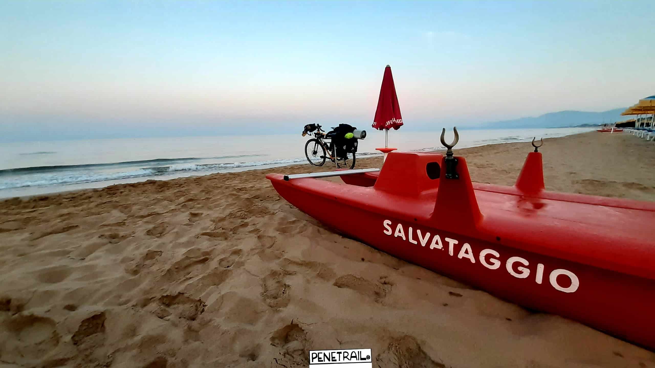 In bicicletta tra Adriatico-Ionio-Tirreno (con infradito). Motore di ricerca utilizzato? Le persone, tramite l’utilizzo del linguaggio verbale, molto più semplice, veloce, preciso, fatto di ricordi preziosi. La parte più bella dell’Italia? Sempre loro le persone. Il pacchetto viaggio prevedeva: nulla, o meglio seguire le indicazioni ricevute dalla persone, mescolando il tutto con l’istinto, sempre più preciso. Diciamo delle leggere linee guida. No itinerari, tracce, prenotazioni, scarpe, sacco a pelo, aspettative, strumenti tecnologici (escluso uso cellulare per foto e diario), pernottamenti solo all’aperto, quasi sempre spiagge.
