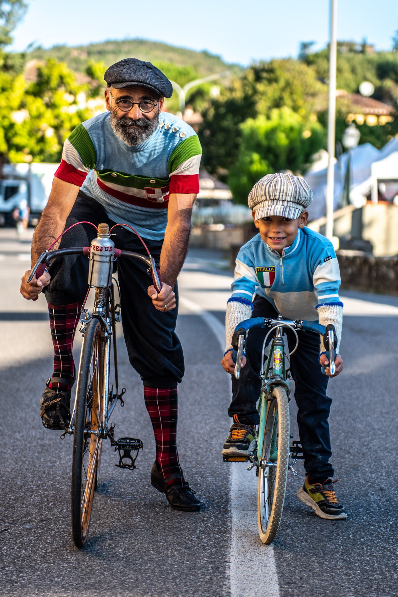 E così quest’anno l’apprezziamo ancora di più, come un bene perduto e ritrovato. Viva l’Eroica e i suoi colori, la sua atmosfera che è insieme così antica e toscana, e allo stesso tempo così internazionale. La festa, che comincia già il venerdì e che neanche la prudenza e le limitazioni riescono ad arginare. I sorrisi che evadono dalle mascherine per arrivare agli occhi, gli abbracci che trovano mille modi per stringerci insieme anche senza toccarci. E la divisione in due giorni dei percorsi – il sabato i lunghi per eroici veri, la domenica tutti gli altri – invece che dimezzare moltiplica la festa, e quando non si pedala, si fa tifo e ci si gode lo spettacolo.
