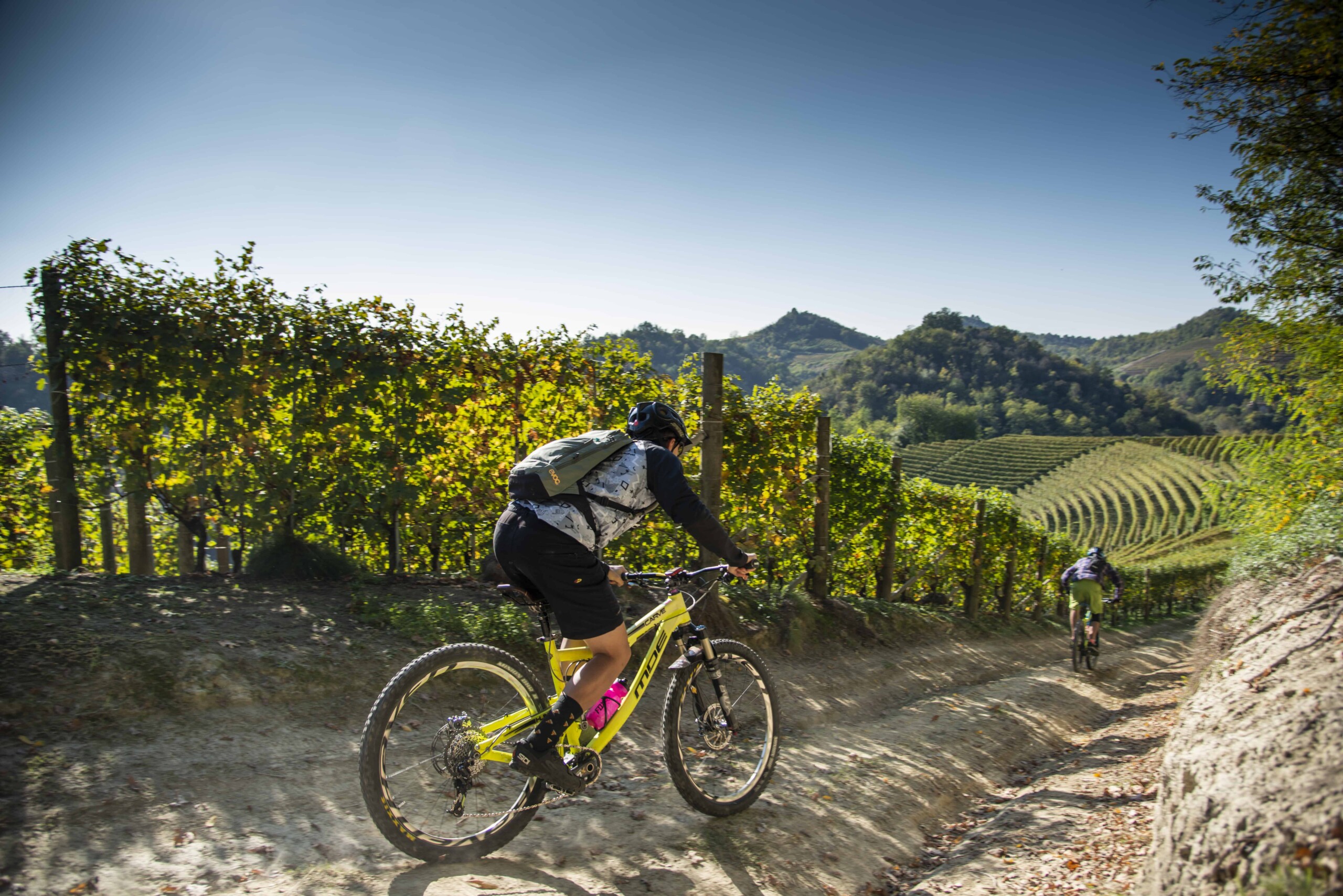 WineTour 4 – I cru panoramici del Roero – Percorso quasi interamente di cresta, che valorizza geometrie vinicole di rara bellezza, con vedute panoramiche a 360° sui castelli e torri medievali del Roero centrale incoronati dalla catena delle Alpi.